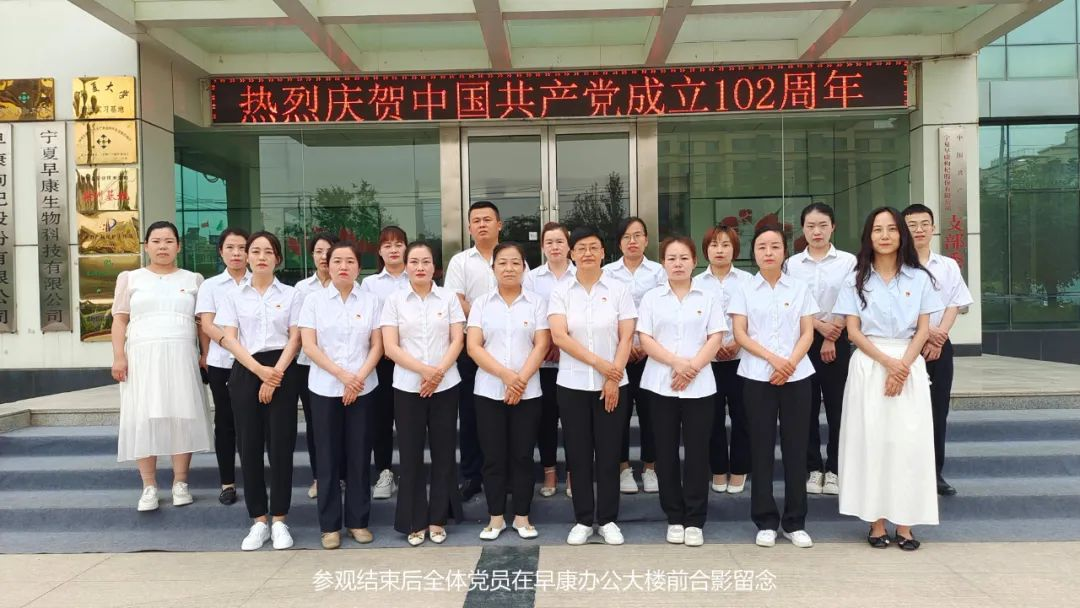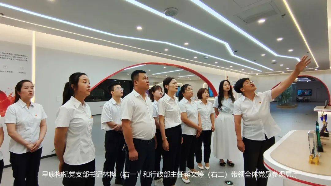 早康枸杞黨支部書(shū)記林樺和行政部主任蔣文婷帶領(lǐng)全體黨員參觀展廳