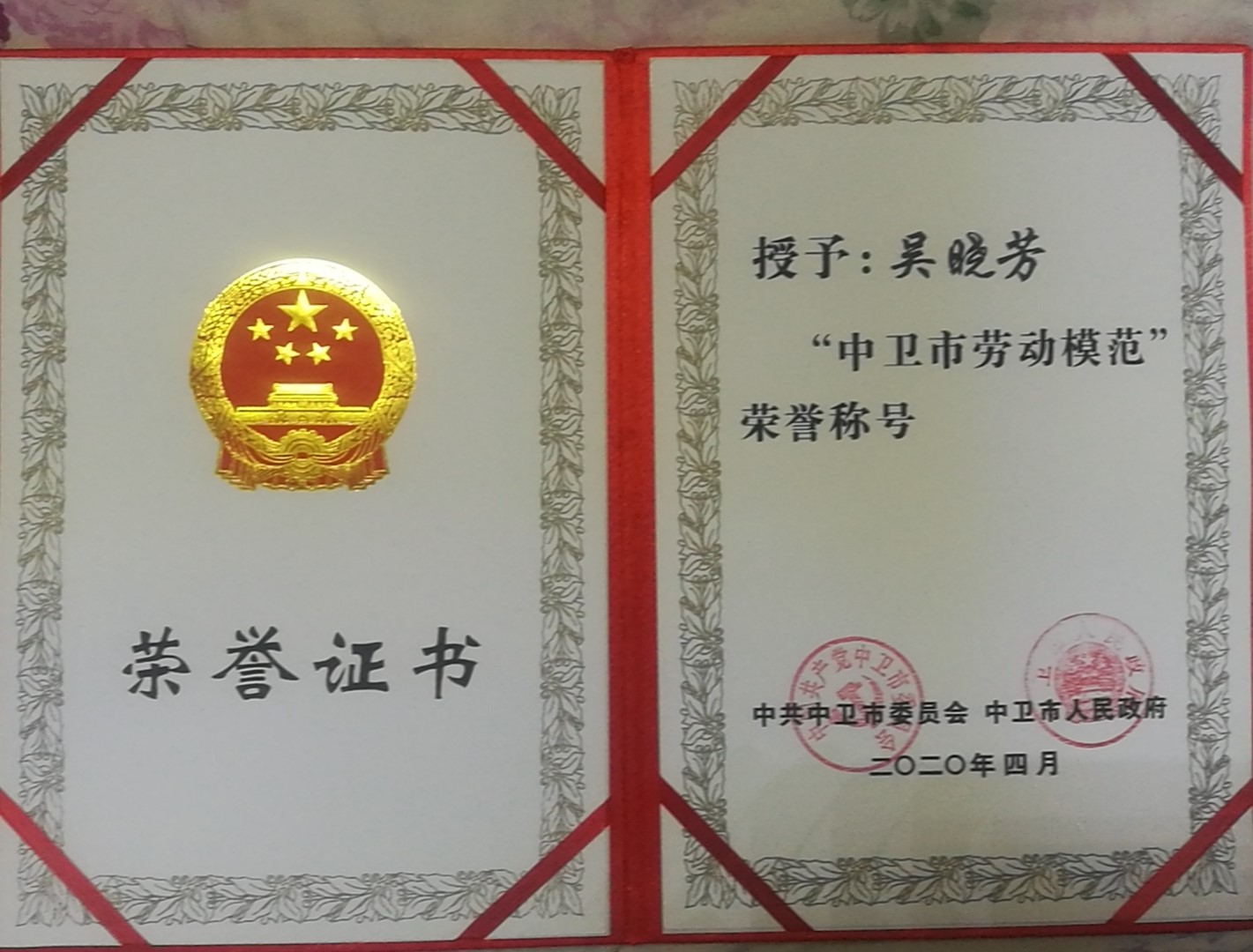 ——吳曉芳獲中衛市勞模 , 為早康贏得殊榮