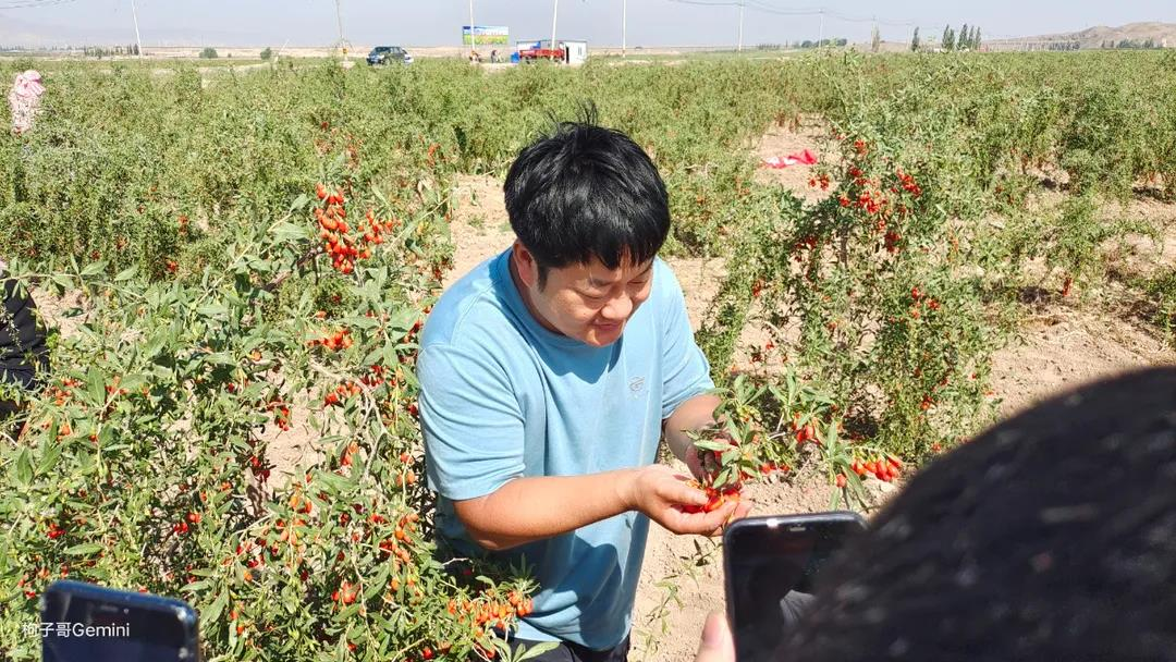 石榴哥直播帶貨“早康枸杞”的第一站,從枸杞源產地開始。