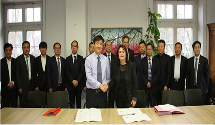 雙方簽署合作交流框架協(xié)議。握手者為費舍爾副主席和劉宏陽副縣長